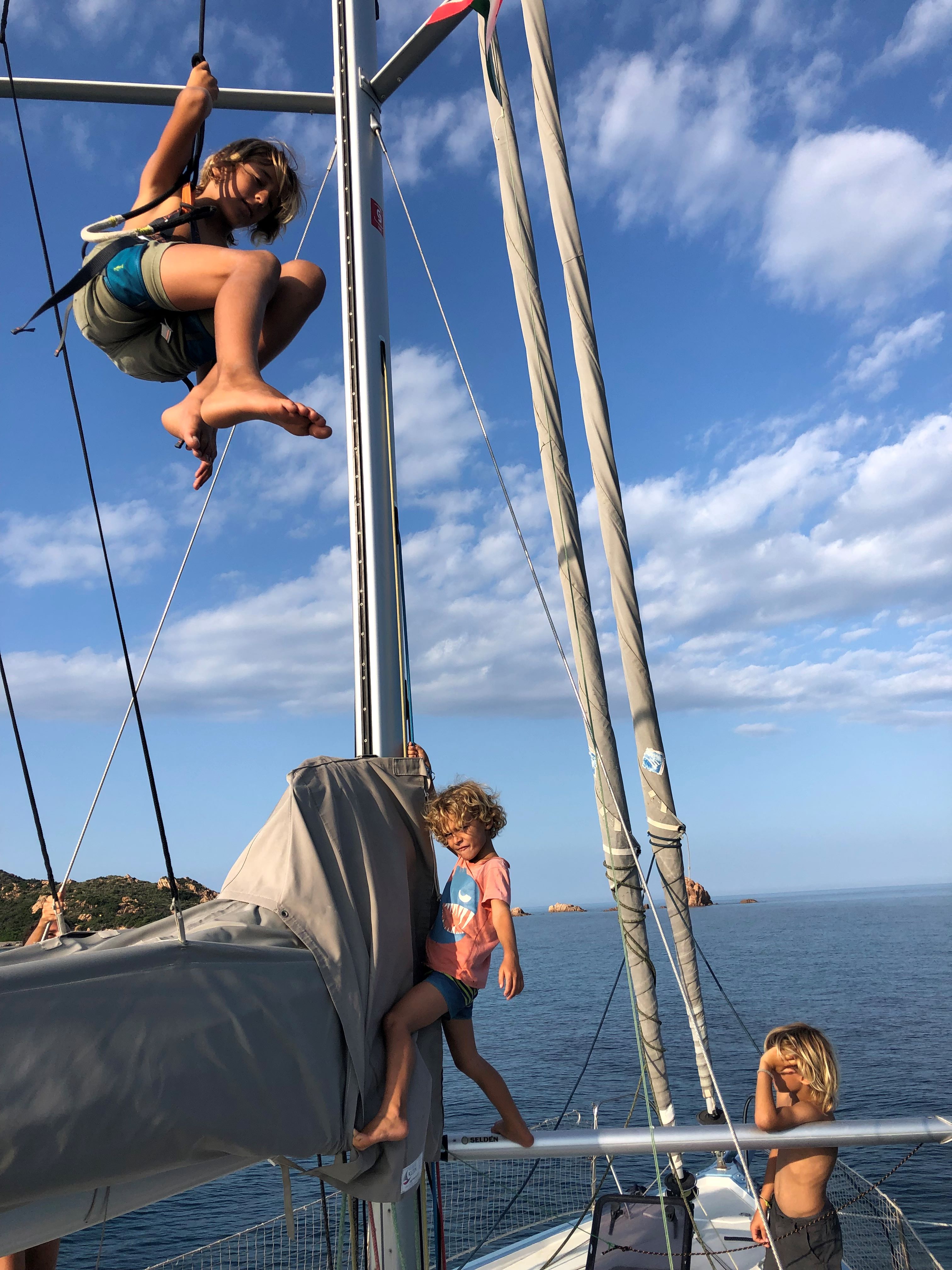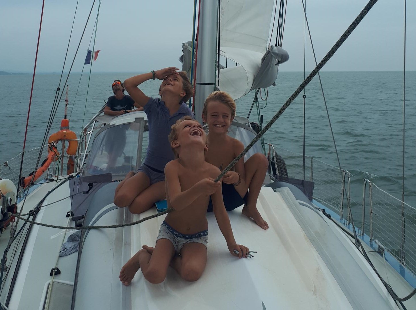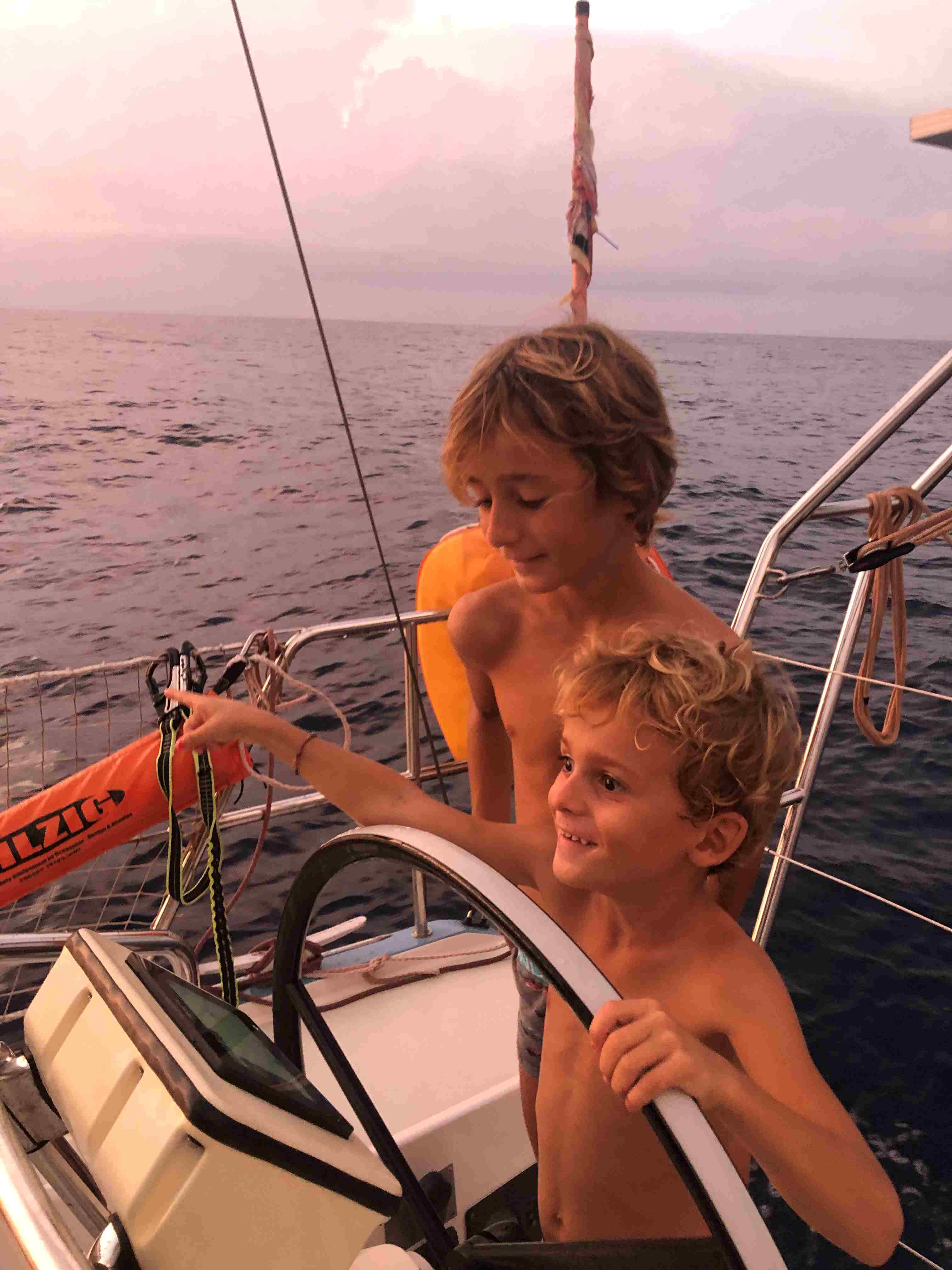 Après deux jours d’école un peu plus tendus, la bonne volonté est de retour chez les garçons. Heureusement car la patience des parents n’est pas au top entre la fatigue et les conditions pénibles de navigation (vent arrière très faible, ciseau à peine tenable…)