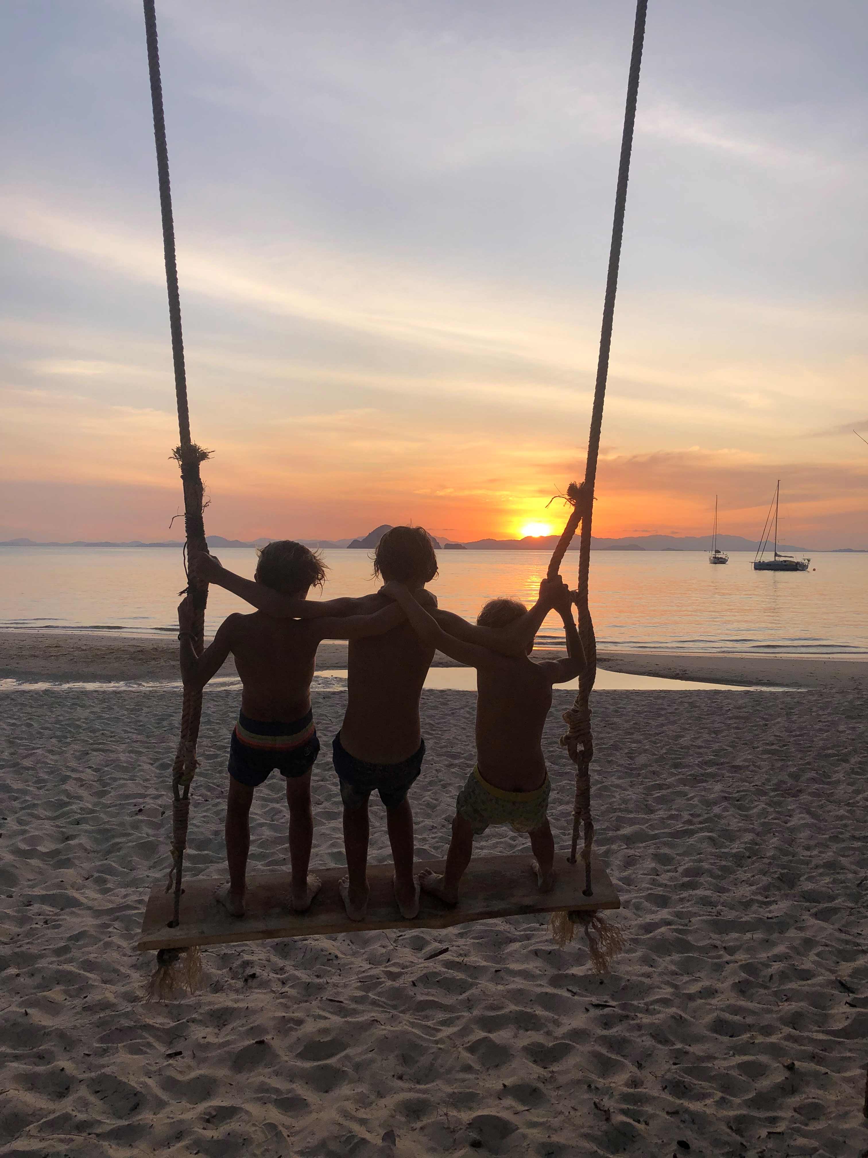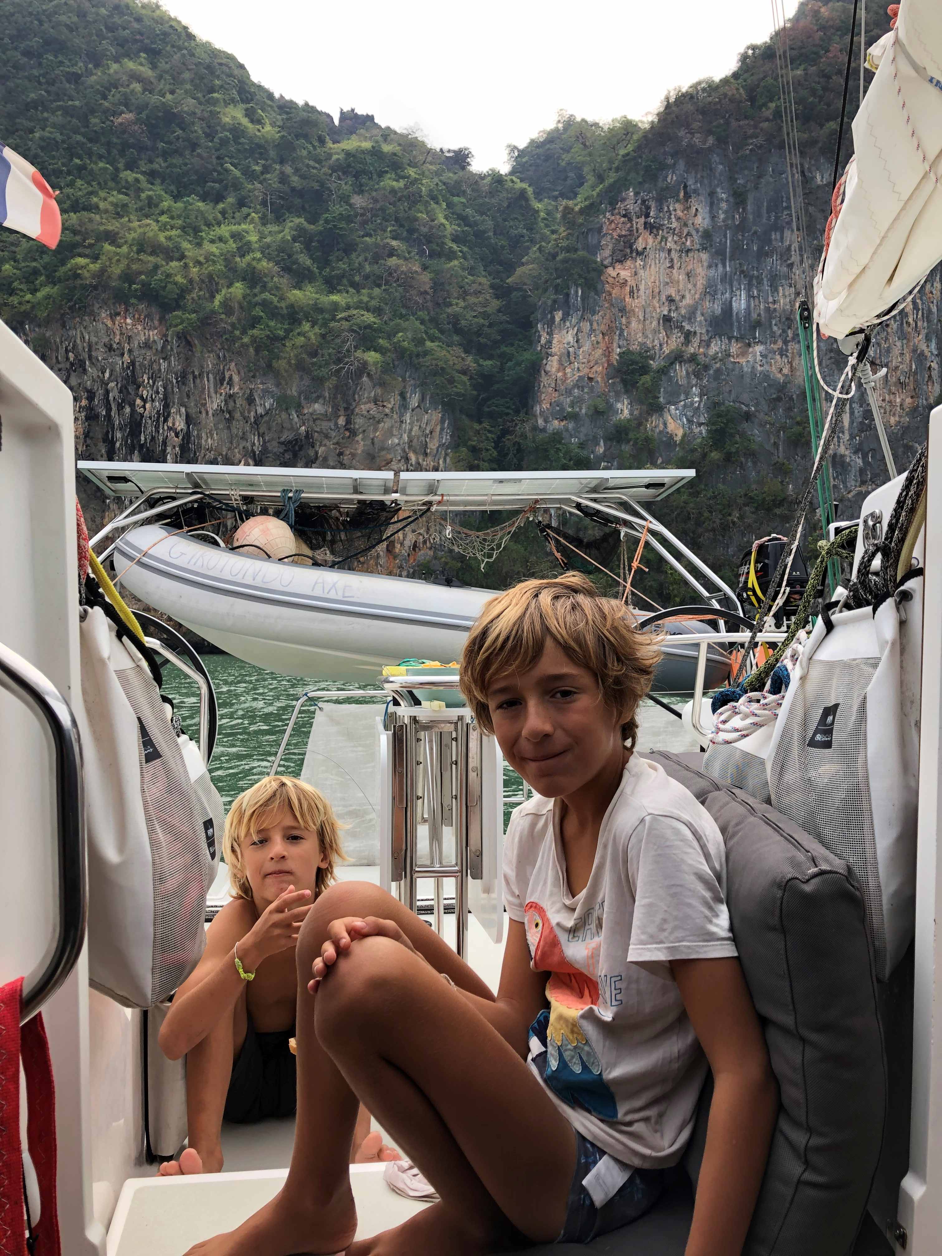 A peine l’ancre posée, des amis allemands nous apportent fruits frais, bières et pains. L’apéro est planifié avec un autre bateau kiwi/français. Les garçons retrouveront enfin leurs copains rencontrés à Phuket.