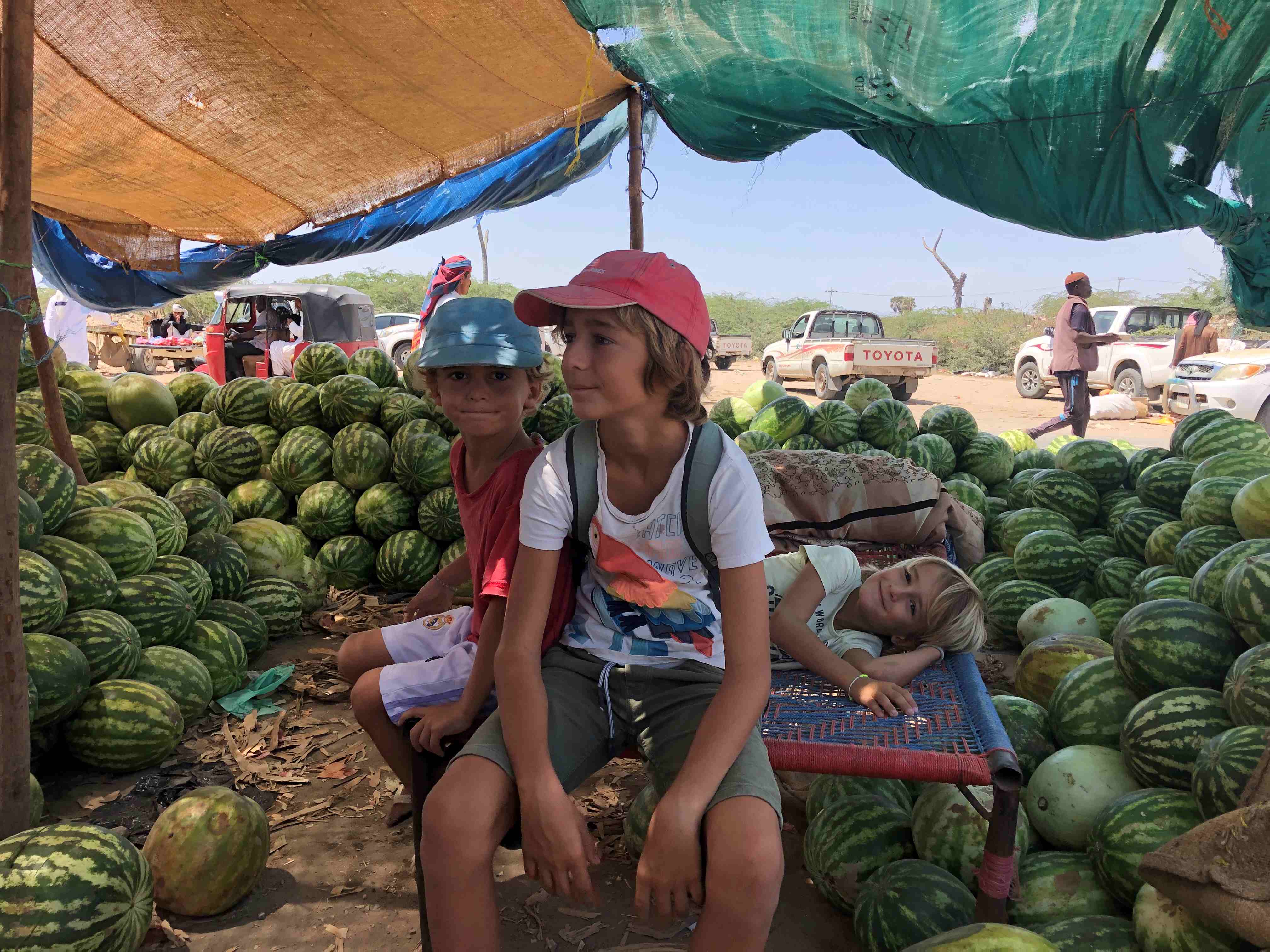 En tout cas, on est ravis d’arriver au mouillage de Suakin. Le paysage est tellement incroyable : le désert vient lécher la mer. Pas la moindre touche de vert entre ces lignes jaunes, blanches et bleues. La vieille ville de Suakin est entièrement en ruines. Mais on devine quelques traces de son passé prestigieux. Nous avons hâte de découvrir cette nouvelle ambiance.